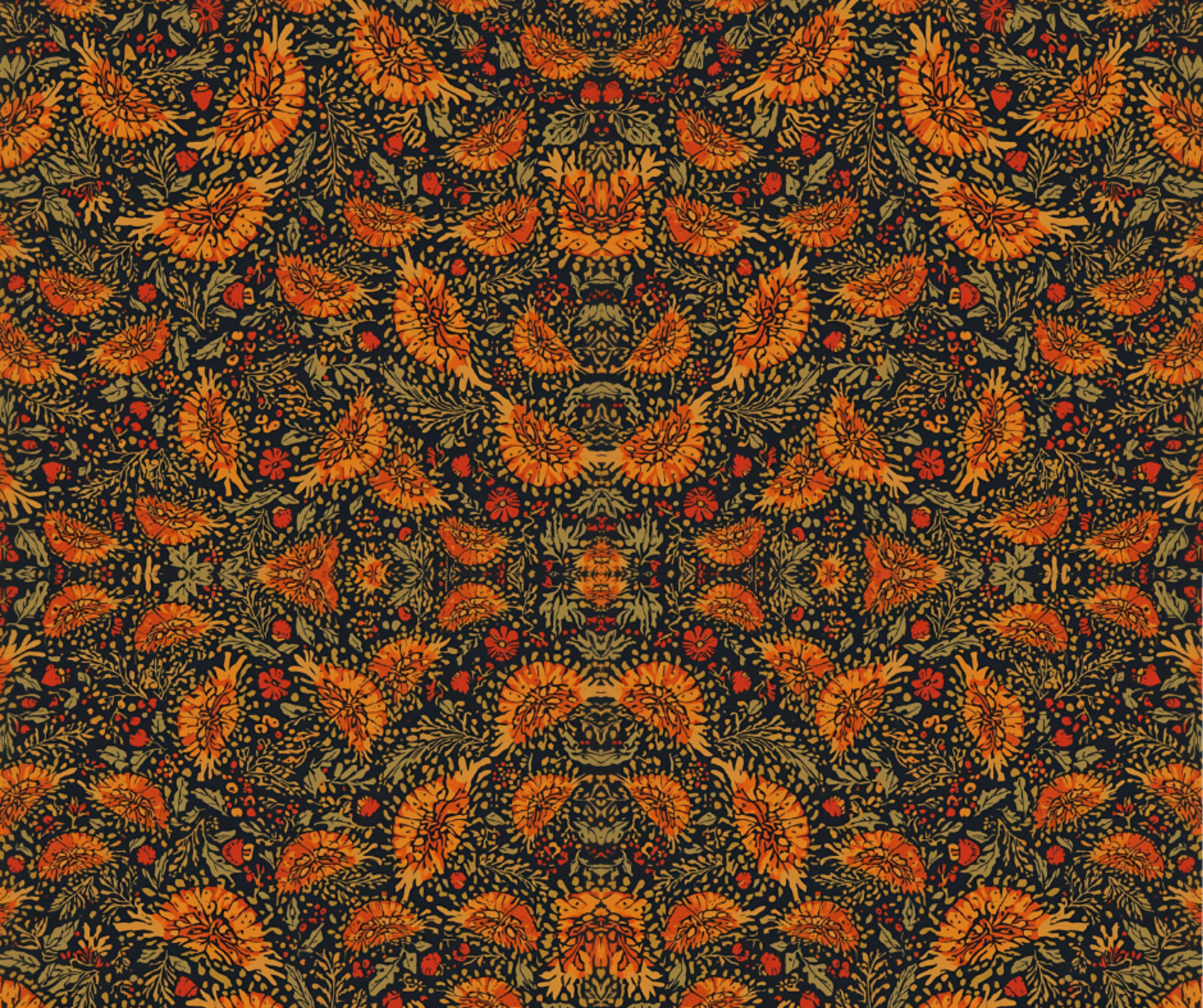 Bring warmth and richness to your holiday gifting with our Autumn Ember Floral Wrapping Paper, featuring a stunning botanical pattern in deep orange, gold, and earthy green tones. The symmetrical floral design creates depth and luxury, making every gift look artistic, elegant, and unforgettable.