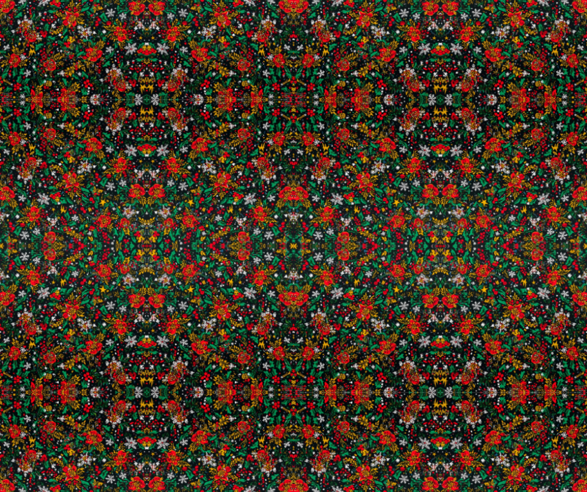 Christmas Garden Kaleidoscope Wrapping Paper (Red/Green/Gold Floral)