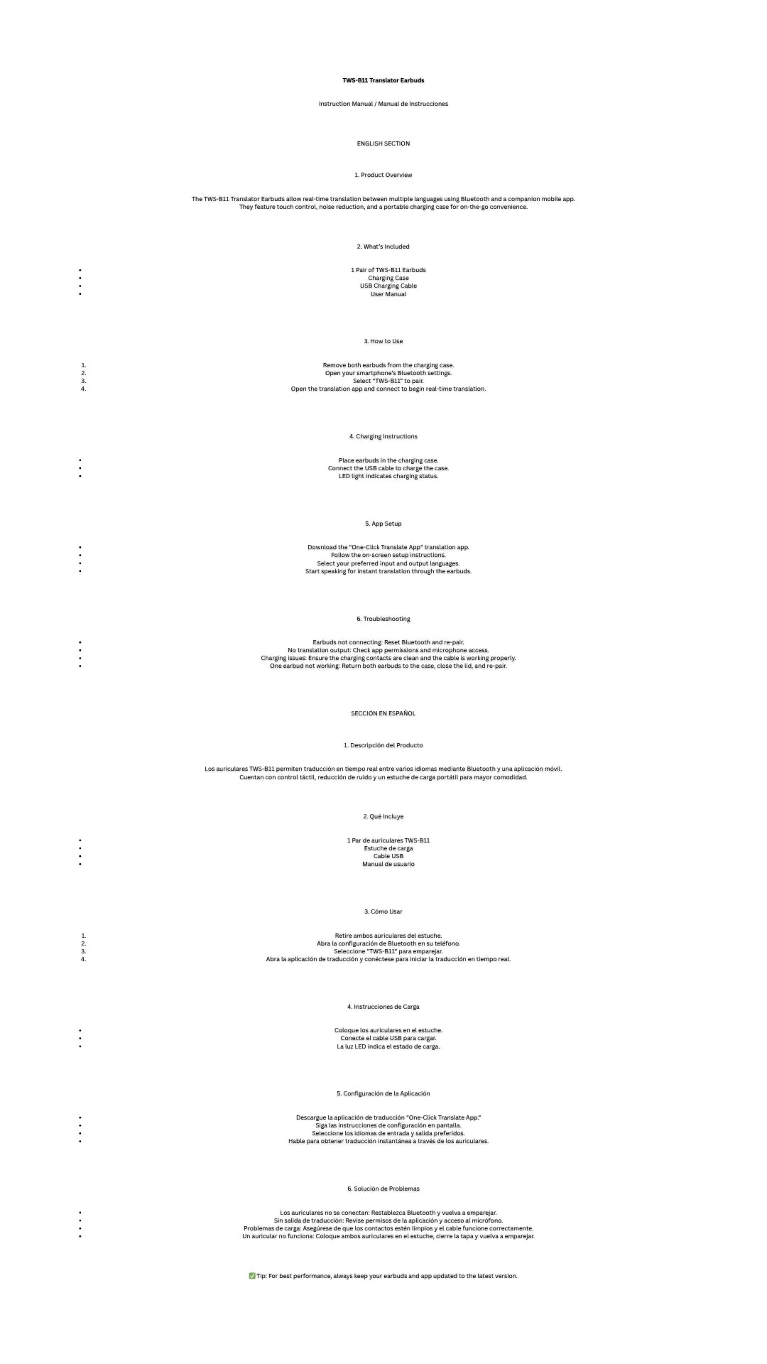 - Stay connected without limits. The TWS-B11 Translator Earbuds combine crisp stereo sound with built-in AI translation support n Crystal Clear Audio – Enjoy rich stereo sound for calls, music, and video.